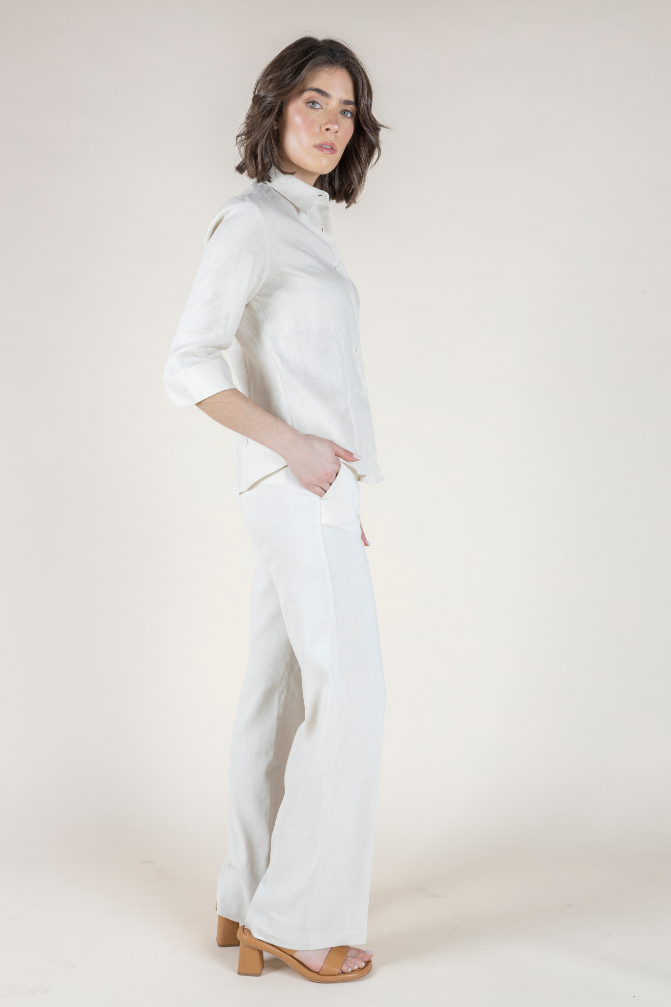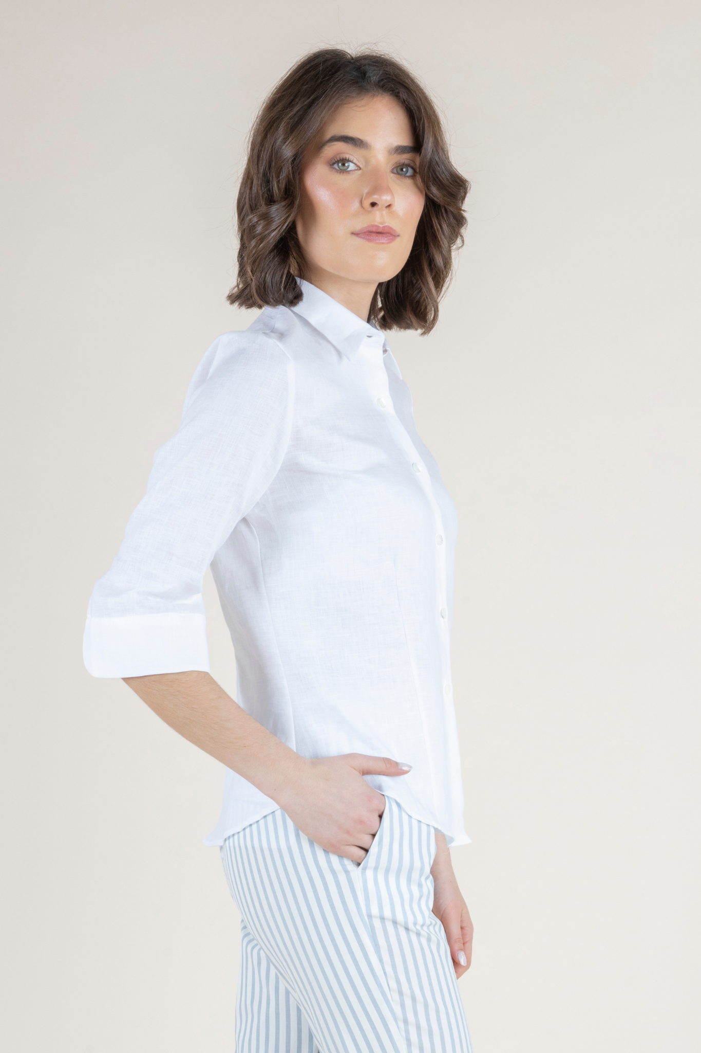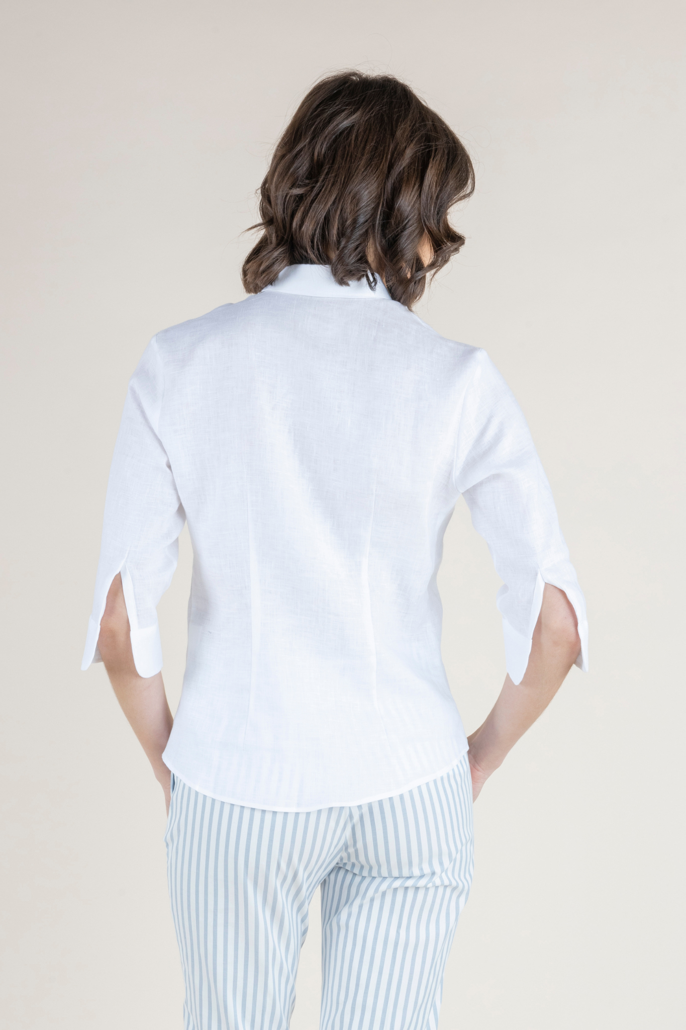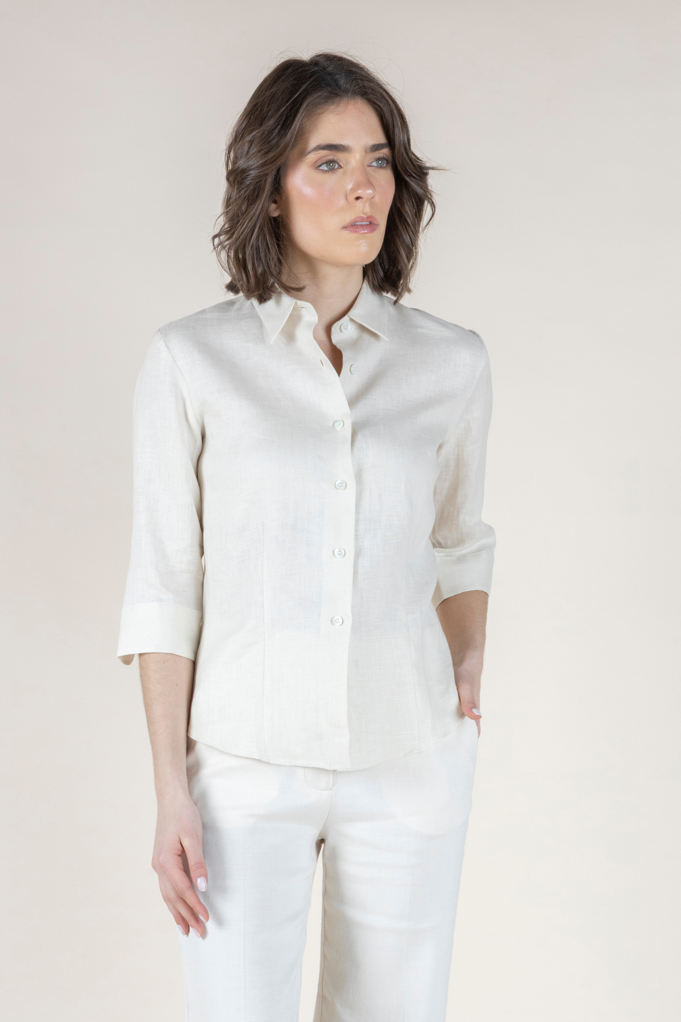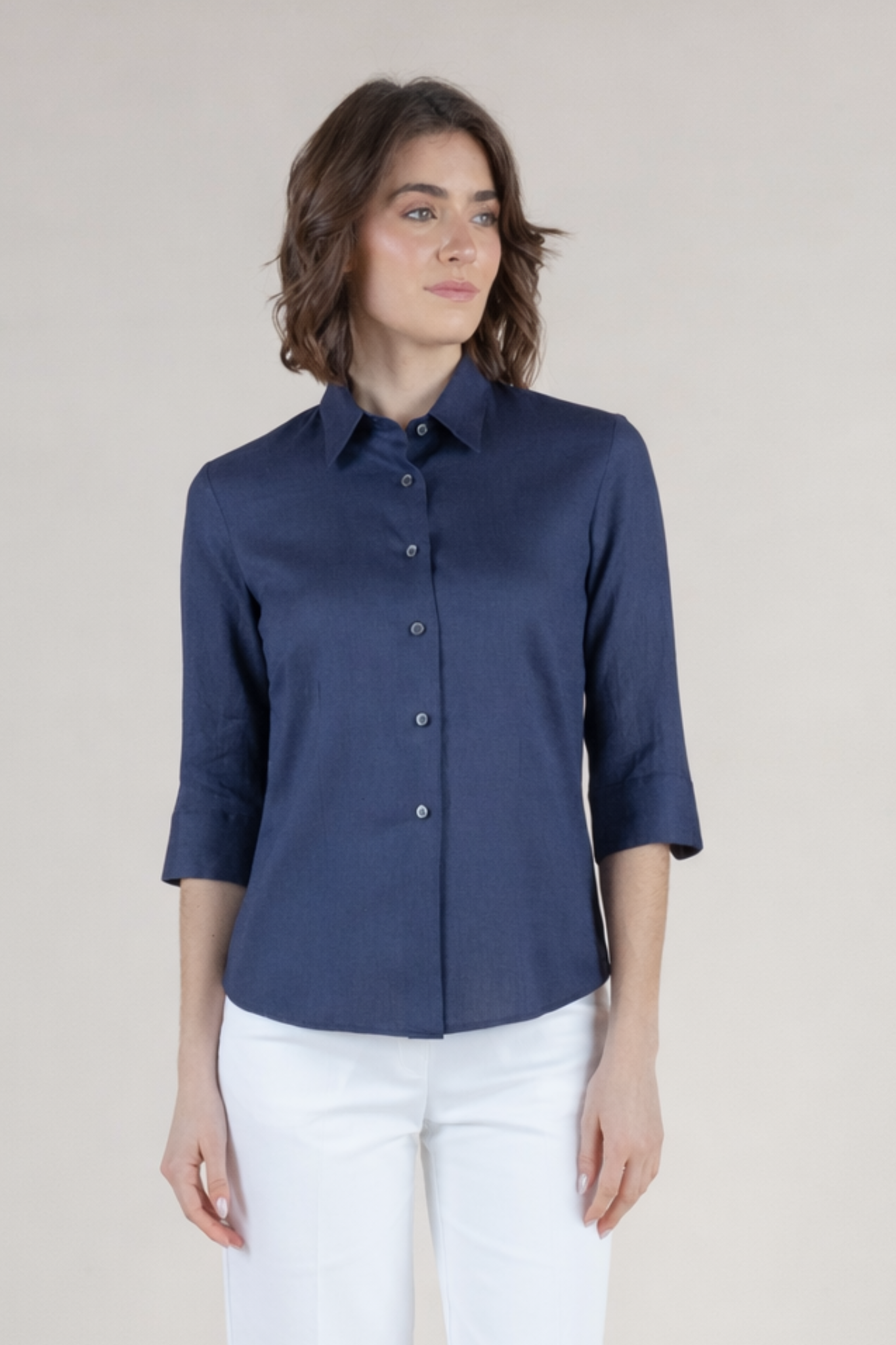 Sleek, tailored, and endlessly flattering, the You Blouse is one of our most beloved silhouettes for good reason. Designed with a beautifully form-fitting shape, this refined essential features a softly curved hem and elegant three-quarter sleeves that create a polished, feminine line. The structured yet breathable linen fabrication offers a crisp finish while remaining effortlessly comfortable throughout the day. Available in a wide range of colors, fabrics, and patterns, the You Blouse is a versatile wardrobe staple that transitions seamlessly from tailored workwear to elevated everyday styling. Its clean lines and sculpted fit make it a go-to piece season after season.
